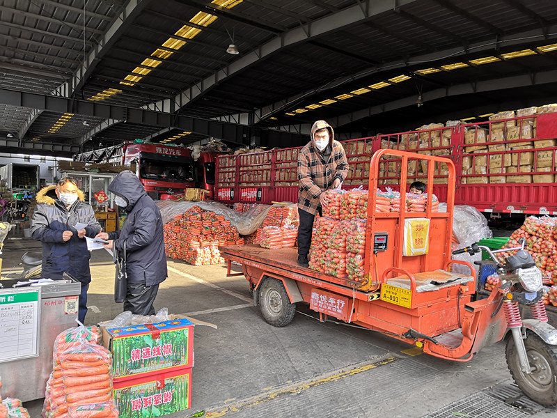 疫情防控以來,嘉興蔬菜批發(fā)市場日蔬菜庫存一直能確保維持在3000噸左右,同時還有正在運(yùn)輸來嘉興途中路上的蔬菜,數(shù)量上與平時大致相當(dāng),供應(yīng)充足;疫情防控以來的23天里,共檢測進(jìn)場人員10.5萬余人次、車輛1.1萬多車次,并且及時排摸處置各類風(fēng)險(xiǎn)點(diǎn),同時為克服工作量增加致人手相對比較緊的問題,黨員干部職工們紛紛自愿不休假,每天堅(jiān)守在不同的崗位上,戰(zhàn)斗在基層最前線!